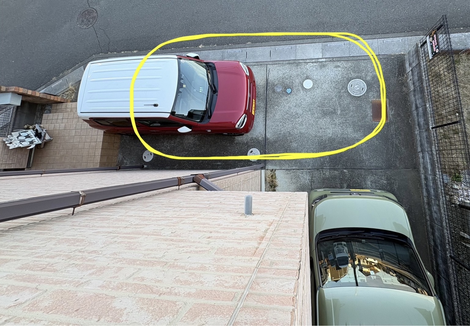 ※駐車する際はピンクのラインに収まるよう、なるべくお停めください。